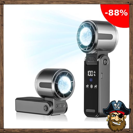 HappyGoo Tragbarer Handventilator, Mini-Turboventilator mit bürstenlosem Motor, 1-100 Geschwindigkeitsstufen, 10000 U/min, 120° Pirate – Deal#s Code klappbar, mit Kühlkompresse, USB-aufladbar für Reise & Büro- Schwarz