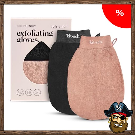 Kitsch Peelinghandschuh 2er-Set – Exfoliating Gloves & Koreanischer Peeling Handschuh für Dusche & Bad | Körperpeeling, Abgestorbene Hautzellen Entfernen | Glatte Haut – Pirate – Dea~ls Code Schwarz & Terrakotta