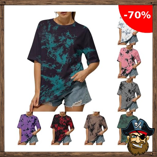 KODMNSW Oversized Tshirt Damen Sommer Batik Longshirt Pirate – Deal:s Code Farbv…