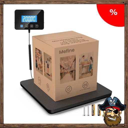Mefine Paketwaage 200 kg/10 g, Präzise Plattformwaage mit Halte- & Tara-Funktion, Industriewaage mit Wand-LCD-Display, Stromkabel Pir:ate – Deals Code oder Batteriebetrieb, ideal für Lager, Gepäck & E-Commerce Verkäufer