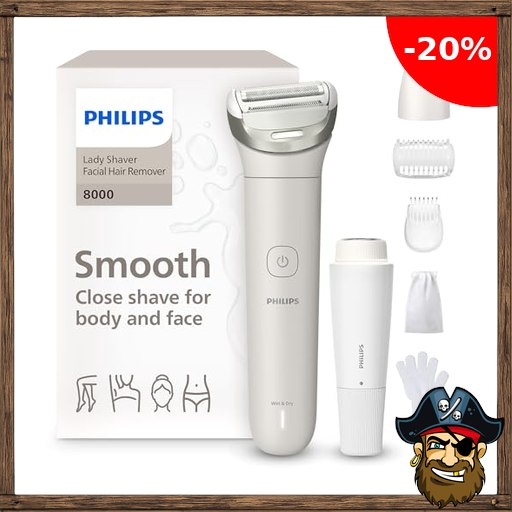 Philips Lady Shaver Series 8000 – kabelloser elektrischer Rasierer, nass und trocken, 3 Klingen, flexibler Scherkopf, LED-Licht, Gesicht/Beine/Körper/Bikinizone, 100 Min. Laufzeit, Modell BRL159/00 Pirate – De#als Code