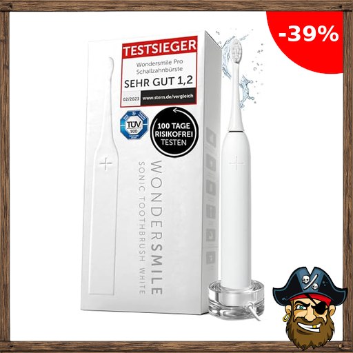 WonderSmile Schallzahnbürste Pro – Testsieger 2026* – Elektrische Zahnbürste IPX8, 4 Pirate! – Deals Code Programme – TÜV SÜD-geprüft – mit Ladestation & 60 Tage Power Batterie mit Smart-Bürstenkopf (All White)