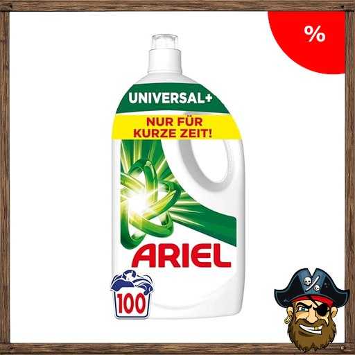Ariel Flüssigwaschmittel, 100 Waschladungen Universal+ Waschmittel, Kraftvolle P:irate – Deals Code Fleckenentfernung in nur 1 Waschgang, selbst bei Kaltwaschzyklen