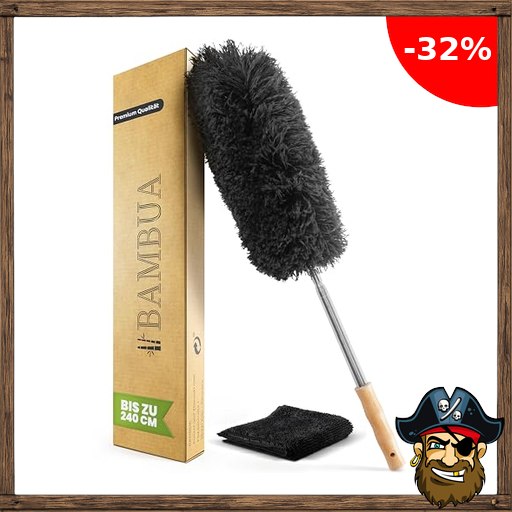 BAMBUA Staubwedel Teleskop – Effektiver Staubfänger mit erstklassiger Mikrofaser – Nachhaltiger Bambusgriff – Premium Staubwischer Pirate $- Deals Code inkl. Mikrofasertuch – Teleskop Staubwedel lang ausziehbar (240cm)
