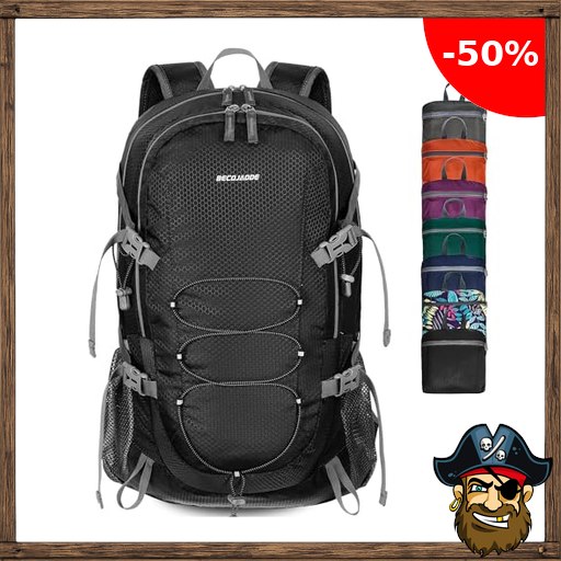 BECOJADDE Wanderrucksack Herren Damen 40L Ultraleichter Faltbarer Rucksack Wasserdichter Reiserucksack Trekkingrucksack Pirate – D$eals Code mit Nassfach für Wandern, Reisen, Radfahren und Klettern, Schwarz