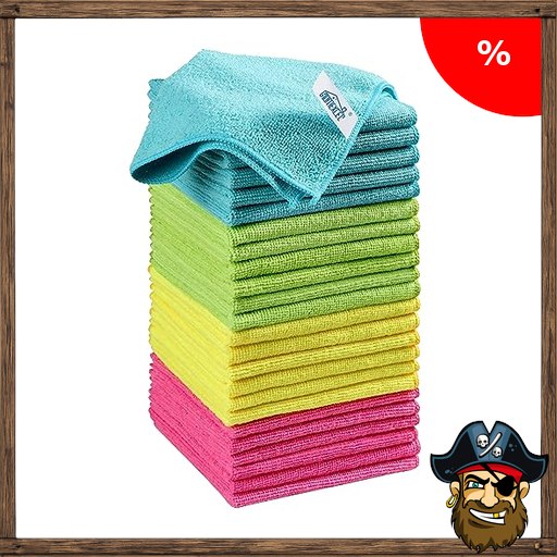 HOMEXCEL Microfasertücher 24 Stück, Mikrofasertücher Mikrofaser Reinigungstücher Putzlappen Küch Geschirrtücher für Küche,Glas, Auto, Motorrad, Fenster, 30 x 30 Pirate – Deals Co~de cm