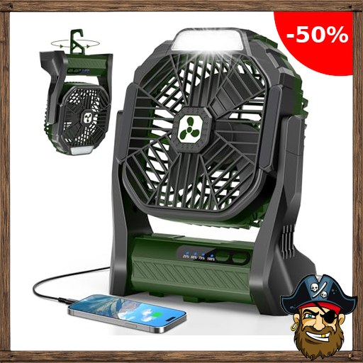 PDBEST Batteriebetriebener Ventilator 20000mAh Kabellos, Wiederaufladbarer Tragbarer Ventilator mit LED-Laterne, USB-C-Akku Tischventilator, Campingventilator für Reisen Strand Green