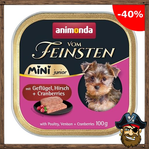 animonda Vom Feinsten Mini Junior Hundefutter nass mit Geflügel, Hirsch und Cranberrys (32 x 100 g), getreidefreies Welpenfutter ohne Zucker und Soja für kleine Hunderassen