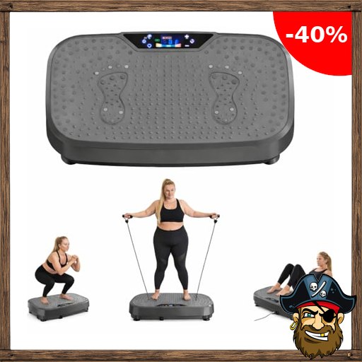 FlexiSpot Vibrationsplatte Fitnessgerät, Heimtrainer mit 2 Widerstandsbänder, 120 Geschwindigkeitsstufen, LCD Touch Display, Pirat$e-Deals Code Fernbedienung, 150W Motor, Ganzkörpertraining, Max. 120kg Schwarz