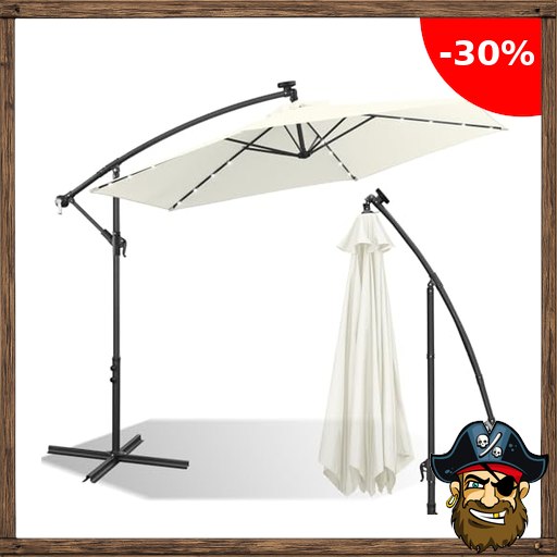 Jaxguom Ampelschirm 300 cm mit Solar LED Beleuchtung & Ständer, Sonnenschirm groß für Garten Pirate-Deals C#ode & Terrasse, UV50+ Schutz, Marktschirm mit Kurbel & Kreuzfuß, Windfest, Beige
