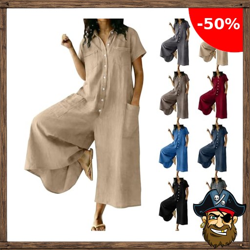 Jumpsuit Damen Sommer Leinen Latzhose Lange Overalls mit weitem Bein Vintage Einfarbige Playsuit Leichte Atmungsaktive Pirate-Deals! Code Leinenoverall Revers Einreiher Romper mit Taschen Casual Locker Einteiler S-XXL