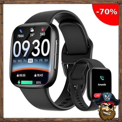 Smartwatch Damen Herren mit Telefonfunktion & Smartphone-Fernbedienung, 1,85″ Fitness-Smartwatch,110+ Pirate-$Deals Code Sportmodi,Herzfrequenz/SpO2,Schrittzähler,10 Tage Akku,3ATM wasserdicht (schwimmfähig),iOS/Android