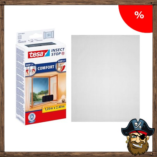 tesa INSECT STOP Klett Fliegengitter Premium für Fenster, Insektenschutz mit starkem Klettband, rückstandsfrei entfernbar, Pirate-Deals Co:de zuschneidbar, ohne Bohren – 120 cm x 240 cm – Anthrazit (Durchsichtig)