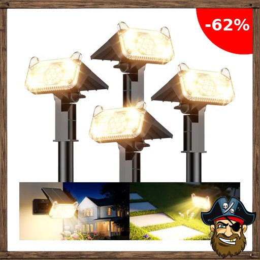 GEARLITE Solarlampen für Außen Garten 4Pack, 6500K Warmweiß Solar Strahler mit 68 LED Auto On/Off, IP65 Wasserdicht Gartenleuchten, Pira~te-Deals Code 2 Helligkeitsmodi Solarleuchten für Außen Garten, Hof, Gehweg, Bäume