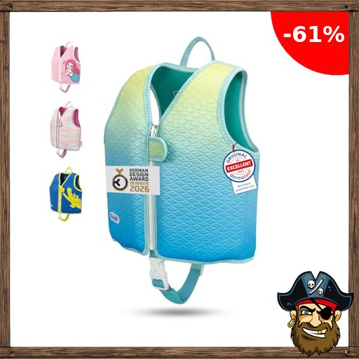 KIDVERSE Schwimmweste Kinder 2-6 Jahre – Komfort Schwimmhilfe mit Bauchumfang bis 62cm – Schwimmhilfe Pirate-Deal~s Code Kinder 2-6 Jahre – Kinderschwimmweste zum Schwimmen Lernen – Schwimmweste Kind