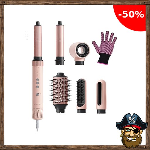 6-in-1 Hairstyler, Airstyler, Lockenstab, Ionen Föhn Locken oder Glätten, Föhnbürste Warmluftbürste Rundbürstenföhn Pirate!-Deals Code Lockenföhn Haartrockner Haarstyling Geräte für Muttertagsgeschenk- Rosa