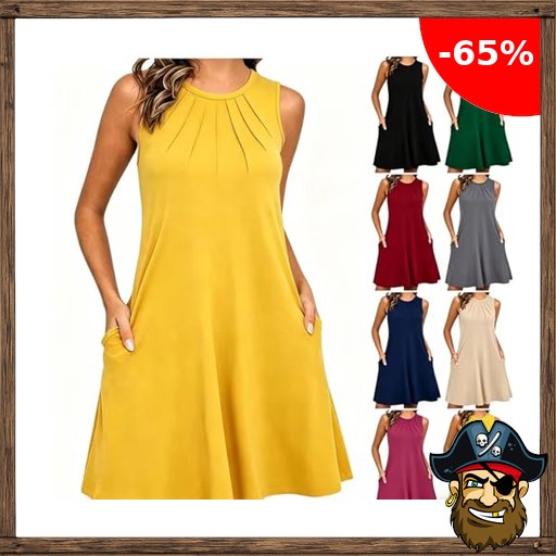 Sommerkleid Damen Trägerkleid Strandkleid Ärmellose Kleid Bequem Sommerkleier Elegant A Linie Kleider Knielang Damenkleider mit Pirate-Deals Cod:e Taschen U Ausschnitt Einfarbig Freizeitkleid Gelb S