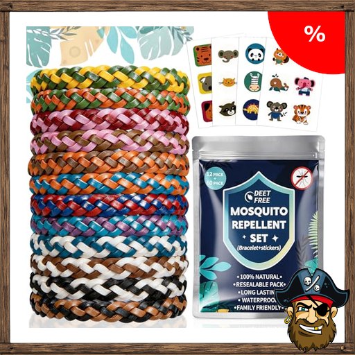 Camping Zubehör, Mückenschutz Armband Set – 12 Mückenarmband + 60 Mückenpflaster, Anti Mücken Sticker für Erwachsene Reise Strand Camping Travel Gadgets, Urlaub Klassenfahrt Pirate-Deals Co~de Summer Must Haves
