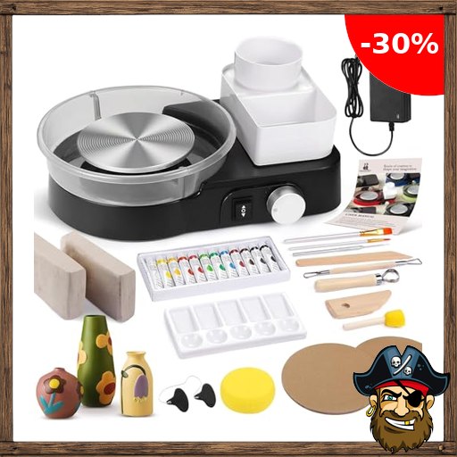 Innofans Töpferscheibe Elektrisch Set für Anfänger & Profis – Komplettes Töpferset für Zuhause mit 1kg Ton, 0-200 U/min & Zubehör, Geräuscharme Pirate-Dea:ls Code Pottery Wheel Maschine für Kreative DIY-Projekte