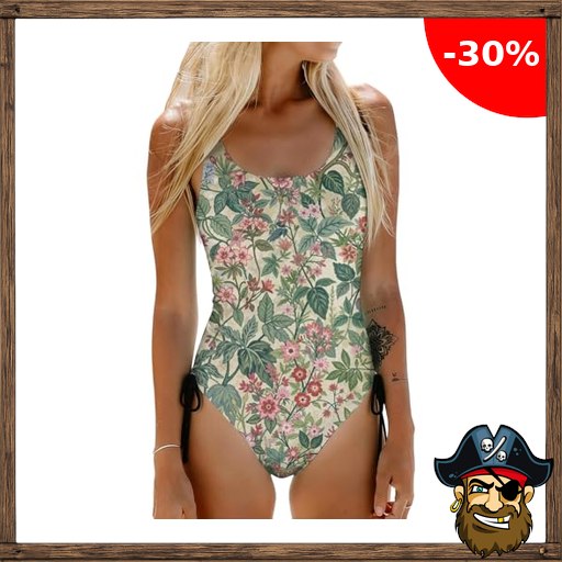 Klassischer Einteiliger Badeanzug Damen mit Blumenmuster Schlankmacher Shaping Effekt Bequeme Passform Elastisch Formstabil und Pirate-De!als Code Schnelltrocknend am Wasser für Jedes Alter Armeegrün L
