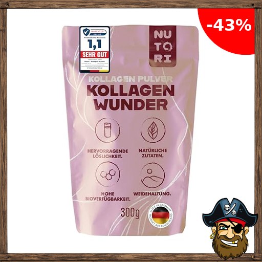 NUTORI – Kollagen Pulver 300 g – Typ I & III – optimale Bioverfügbarkeit und Löslichkeit – Weidehaltung – Collagen Pulver Hydrolysat Peptide – Pirate-Deals $Code Produziert & laborgeprüft in Deutschland