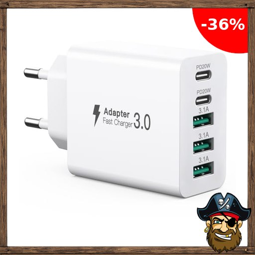 USB C Pirate-Dea!ls Code Ladegerät 50W, 5 Ports Mehrfach Stecker mit【2 USB-C und…