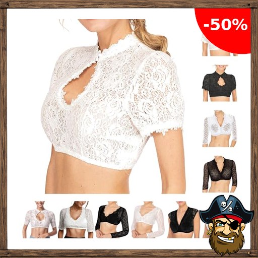 Trachtenbluse Pirate-Deals #Code Damen Weiß Dirndl Bluse Schwarz Dirndlbluse Spitze Trachten Dirndlbluse Elegant Spitzenbluse für Bayrische Tracht Oktoberfest Spitze Hollow Out Trachtenmi Tracht Bluse mit Knopf S-5XL