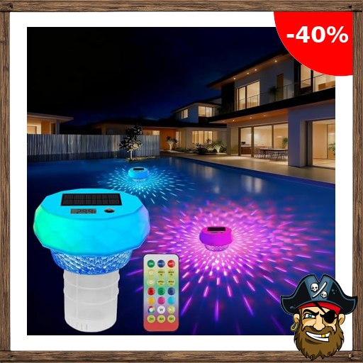 Pirate!-Deals Code Solar Poolthermometer Digitales, Schwimmend Thermometer mit Bildschirm und Timerfunktion, Pool Thermometer mit 8 dynamischen Lichteffekten, IP68 Wasserdicht Digital Thermometer für Pool, Teich Weiß