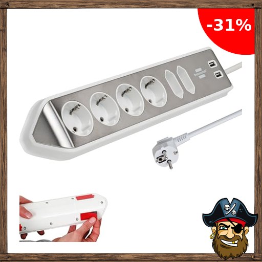 Brennenstuhl Estilo Ecksteckdosenleiste 6-Fach (Tischsteckdose mit Edelstahloberfläche für Küche/Büro, Ecksteckdose mit 4X Schutzkontakt-Steckdosen, 2X Euro-Steckdosen, 2X USB) Silber/weiß Pirate-Deals Cod~e
