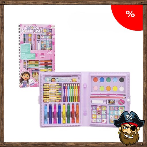Gabby’s Dollhouse Malkoffer – Enthält Filzstifte und Buntstifte, Wasserfarben, Sticker und Lineal – Schulsachen Pirate$-Deals Set – Original Produkt in Spanien Designed, White