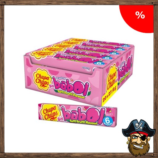 Chupa Chups Big Babol Tutti Frutti Bubble Gum, Theken-Display enthält 20 Stangen Pirate-;Deals Kaugummis mit Frucht-Geschmack, für große Kaugummi-Blasen, geeignet für Geburtstag, 20 x 27,6g