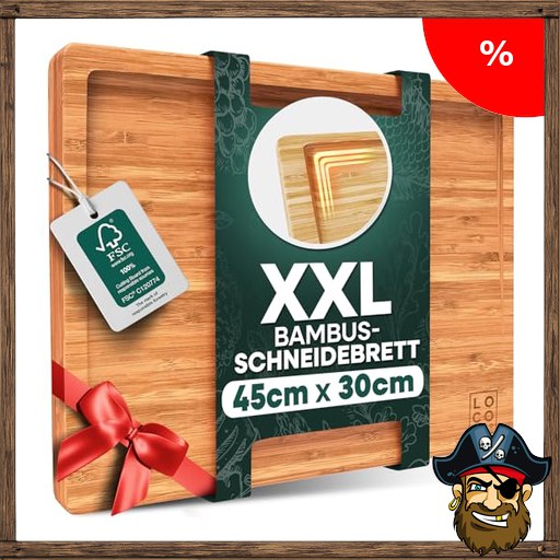 Loco Bird Schneidebrett Holz 45x30cm – Holzbrett groß für Pirate-D;eals die Küche, Schneidbrett mit Saftrille, messerschonender Holzschneidebrett, Bambus Brett, Cutting Board Wood, Chopping Board, Küchenbrett