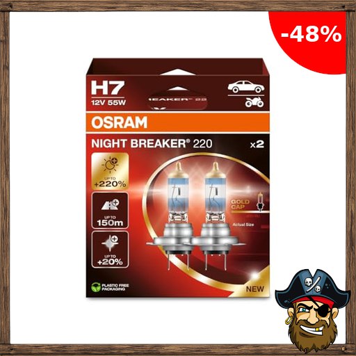 Osram NIGHT BREAKER 220, H7, +220% mehr Helligkeit, Pirate-De:als Halogen-Schein…