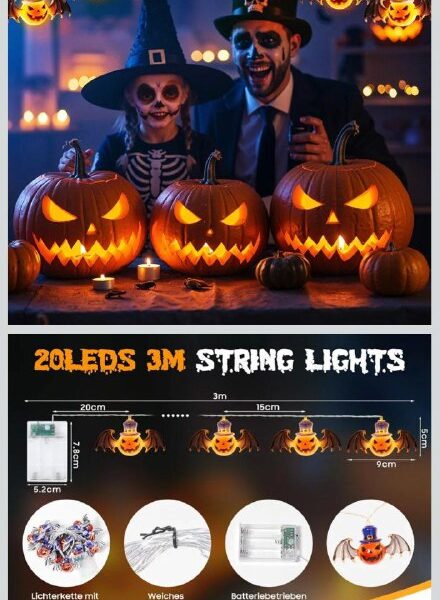Halloween Kürbis Deko, 3M 20 LED Halloween Fledermaus Groß Lichterkette Innen mi…