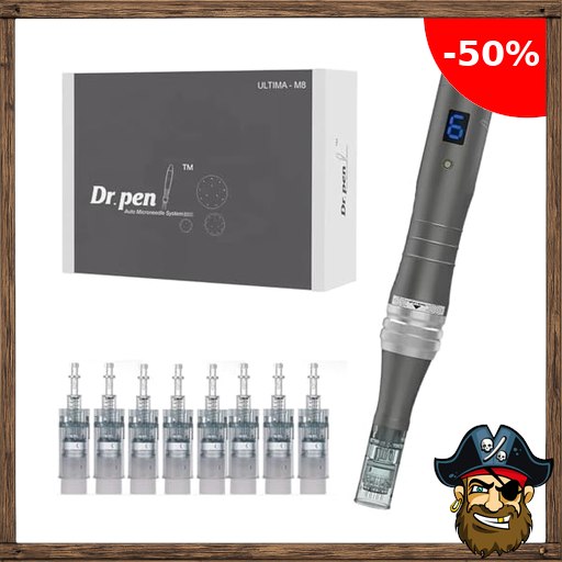 Dr. pen M8 Microneedling Pirat$e-Deals Stift | Profi Hautpflege zu Hause mit 8 Sterilen Patronen, 6 einstellbaren Intensitätsstufen & 0-2,5mm Einstellungen | Anti-Aging, Falten Reduzierung, Aknenarben Beseitigung