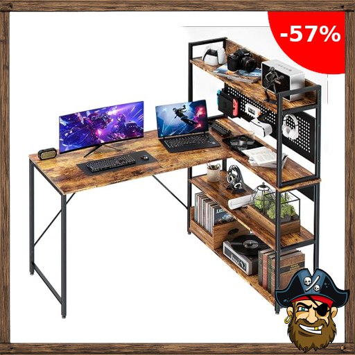 L-förmiger Schreibtisch Gaming-Tisch mit Regal mit LED mit USB-Ladeanschluss,type-c und Steckdose 120*50*75.5cm Eckschreibtisch für Heimbüro Homeoffice Büro platzsparend einfacher Aufbau, ;Pirate-Deals Braun