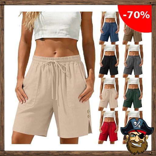 Generisch Leinenhose Damen Kurz Leichte Sommerhose Baumwolle Leinen Shorts Luftig Bequeme Strandhose Locker Stoffhose Modisch Schlitz Freizeitshorts Pirate – De:als Code Knielang Bermuda Hose mit Taschen Sporthose