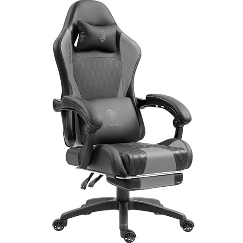 PirateDeals BlackWeeks: Dowinx Gaming Stuhl mit Taschenfederkissen, Ergonomischer Massage Gamer Stuhl aus Pirate-De;als Leder mit Kopfstütze und Fußstütze, Computerstuhl für Büro und Gaming, Grau