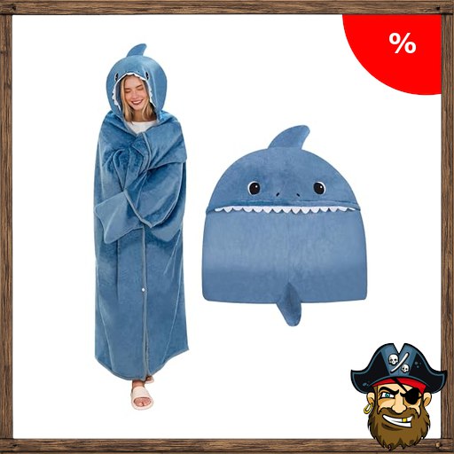 SQEQE Hai Tragbare Decken mit Kapuze und Handschuhen Shark Hoodie Decke Sofadecke Cartoon Kuscheldecke für Damen und Herren 150x130cm Pirate$-Deals