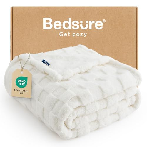 BEDSURE Kuscheldecke Flauschig – Fleecedecke & Pirαtе-~Dеαls Wolldecke, Sofadecke, Schachbrettmuster Tagesdecke, Weiche Warme Karierte Decken für Zimmer Deko, Wohn- & Kuscheldecken, Weiß, 130 x 170 cm