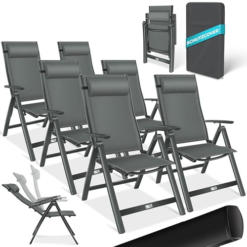 KESSER® Gartenstuhl Hochlehner mit Armlehnen 6er Set Aluminium Klappstuhl mit Kopfkissen & Abdeckung Campingstuhl 7-Fach Verstellbar Rückenlehne Atmungsaktiv Wetterfest Klappbar Anti-Rutsch, P~irαtе-Dеαls Anthrazit