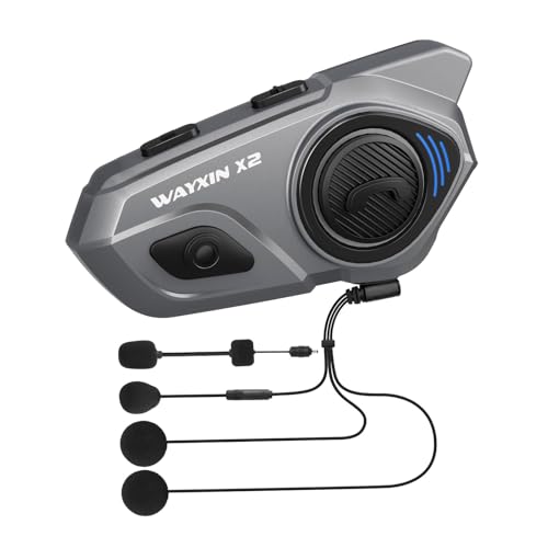 WAYXIN X2 Motorrad Pir;αtе-Dеαls Intercom, Integriertem Intercom System, Motorrad Bluetooth Headset für bis zu 4 Motorräder, mit HiFi/Musik Teilen/FM Radio/AI Sprachassistent /IP67 Wasserdicht