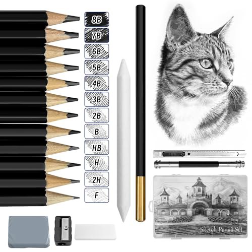auriikoop Bleistift Set, 26 Zeichenstifte Set, HB B 2B 3B 4B 5B 6B 7B 8B F 2H H,…