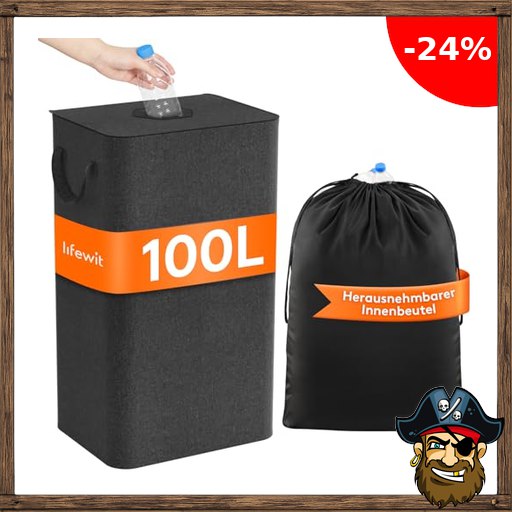 Lifewit 100L Pfandflaschen Sammelbehälter mit Deckel, Groß Pfandflaschen Aufbewahrung, Behälter Leergut & Altglas Aufbewahrung, Pir#ate-Deals Flaschensammler mit Loch Küche Abstellraum Flaschentasche, Dunkelgrau