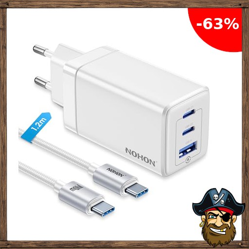 NOHON USB-C Ladegerät Fast Charger: 65W GaN 3-Port Schnellladegerät PD3.0 mit 140W Typ-C 1.2M ladekabel | PPS kompatibel mit iPad Pro Air Galaxy S23 | für iPhone 15 14 13 12 Mini Pir#ate-Deals Pro Max | Weiß