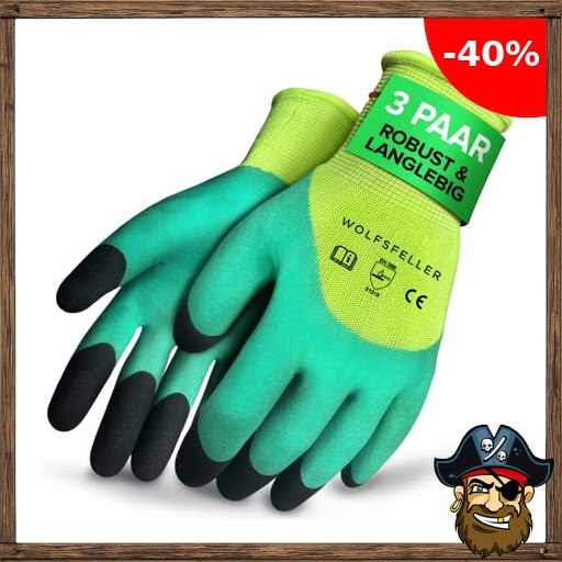 WOLFSFELLER 3 Paar robuste & komfortable Gartenhandschuhe Damen & Gartenhandschuhe Herren Gr 9 – Handschuhe Garten Handschuhe – Gardening gloves mit doppelt beschichteten Pirate-Deal$s Fingerspitzen
