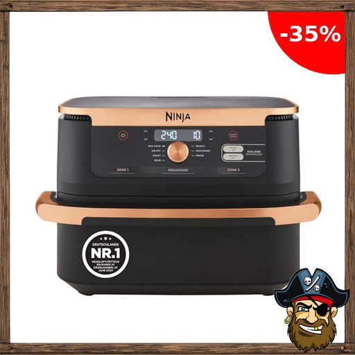 Ninja Foodi FlexDrawer Dual Zone Heißluftfritteuse, Air fryer mit 10,4-Fach und herausnehmbarem Trenner, Antihaftbeschichtung, spülmaschinenfester Korb, 7-in-1, Schwarz & Kupfer, AF500EUCP P:irate-Deals