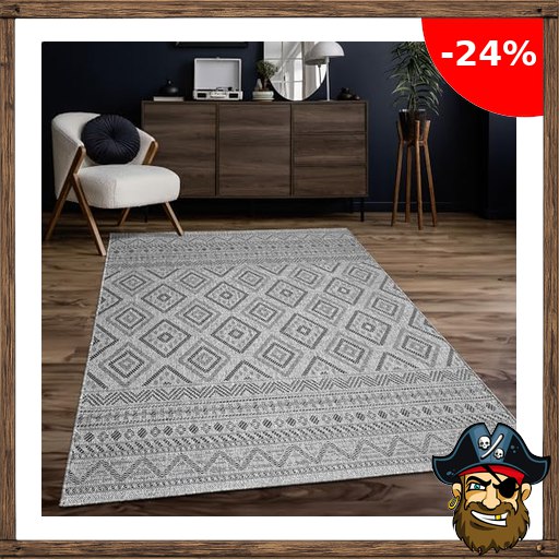 Paco Home Outdoor Teppich Flachgewebe Modern Boho-Style wetterfest & UV-beständig Ideal für Terrasse Balkon Wohnzimmer & Küche, Grösse:120×160 Pirate-!Deals cm, Farbe:Anthrazit