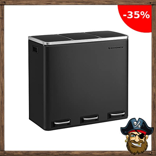 SONGMICS Mülleimer Küche, 3 x 18 L, Mülltrennsystem 3 Fächer, inklusive 15 Müllbeutel, Abfalleimer, Treteimer, für recycelbare Pir#ate-Deals Abfälle, Biomüll, mit Deckel, tintenschwarz LTB54BK