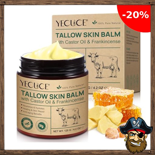 Beef Tallow Creme Bio – 100% Grasgefüttertes Rindertalg mit Rizinusöl Weihrauchöl, Rindertalg Creme Hautpflege, Gesicht und Pirate-Deal~s Körper, Feuchtigkeits für Alle Haut – 120g